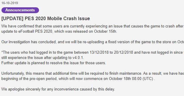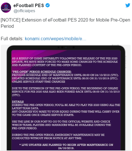 Update Rolling Out Pes Mobile 2019 3 Day Server Maintenance Starts Will Get Updated To Pes 2020 Piunikaweb
